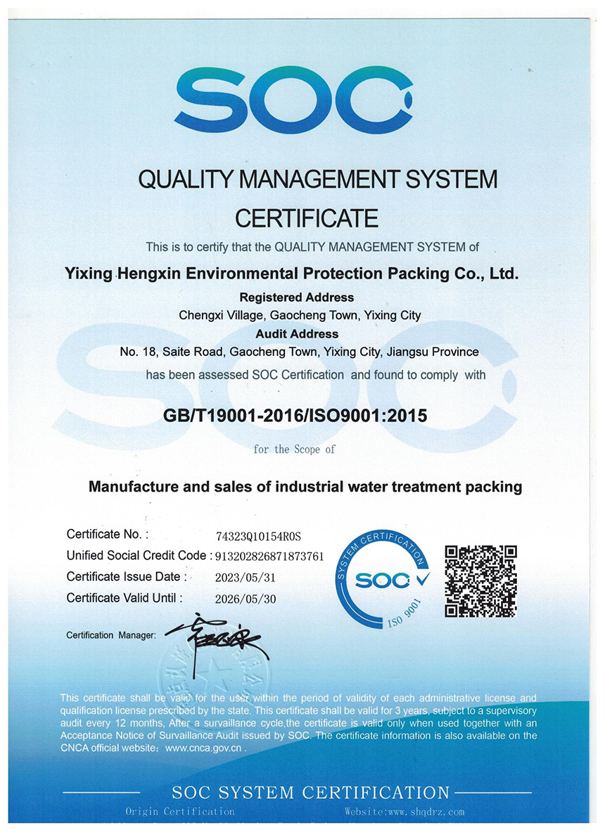 质量管理体系认证证书(英文)